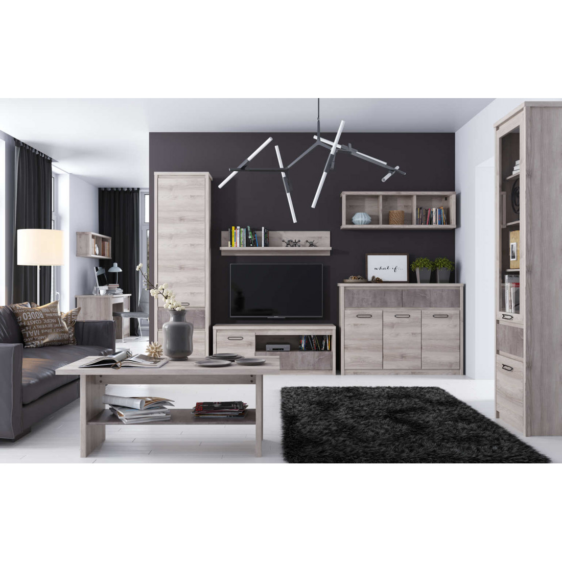 Гостиная Джаз выполнена в современном стиле. Отличительной особенностью этой коллекции является одновременное применение двух вариантов открывания двери: при помощи металлических ручек на одних фасадах и внутренней фрезеровки на других. Фасады выдвижных ящиков могут быть выполнены как в цвете оникс, так и в цвете каштан найроби. Эта мебель станет заслуженным украшением для любого интерьера.