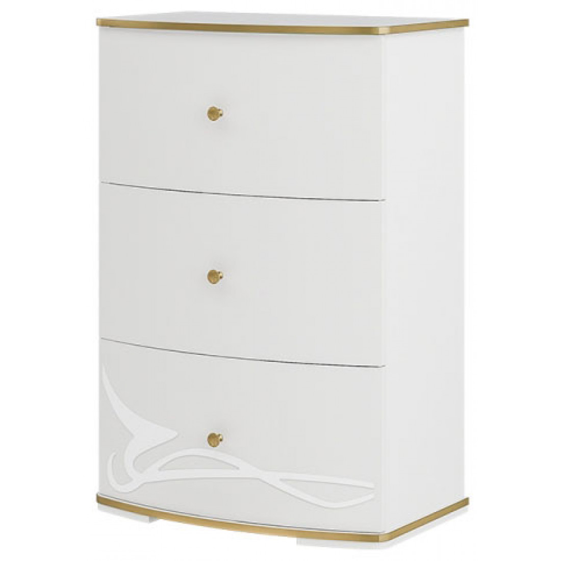 Комод Либерти МН-313-06 из новой коллекции белорусского производителя - это светлые тона, эксклюзивное дизайнерское оформление, все это выглядит как уникальное решение для комнаты отдыха. Приятным дополнением служат изящные металлические ручки и система демпфирования для систем выдвижения!