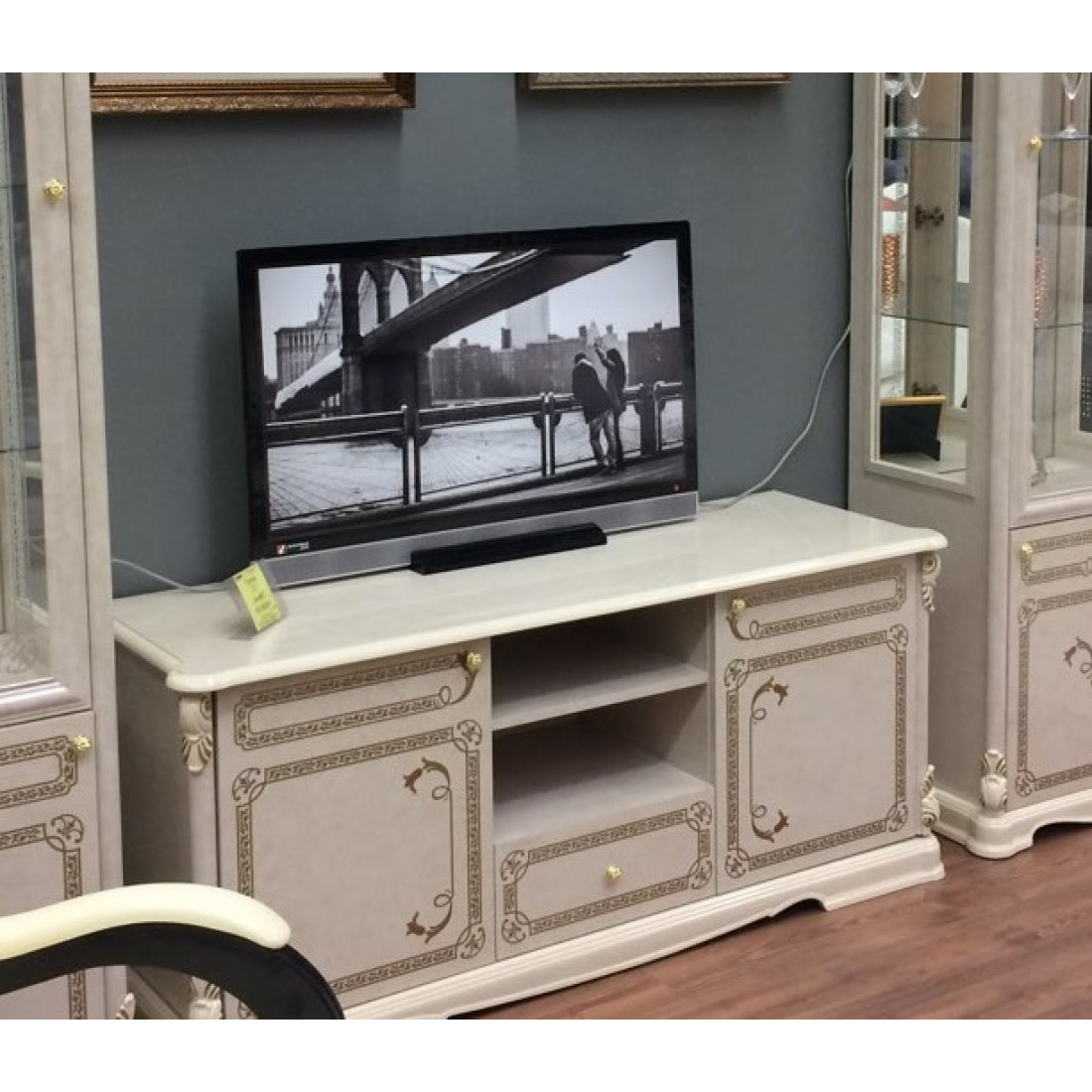 Тумба под телевизор Роза (беж) - выполнена в классическом стиле от Российской фабрики "ДИА мебель". Выполнена в бежевом цвете с элементами позолоты на фасаде. Аккуратные и элегантные ручки придадут атмосферу богатства. Такая тумба не займет много места и будет просто незаменимым модулем для вашей гостиной.