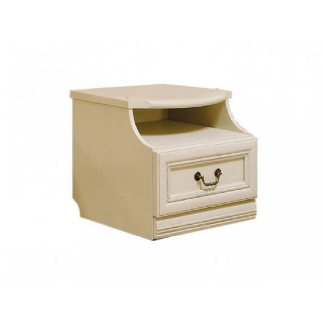 Оригинальная прикроватная тумба из коллекции «Нинель» предлагает выдвижной ящик и удобное, открытое место для хранения. На столешницу сверху можно поставить ночник или лампу. Красиво оформленный при помощи резьбы ящик дополнен изящной состаренной ручкой. Качественная и долговечная мебель из натурального дерева от белорусских мастеров фабрики «Молодечномебель» отлично дополнит интерьер в различных стилях.